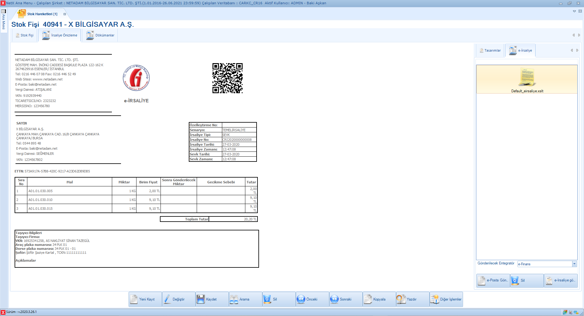 - Giriş yaptığınız stok takip programı stok fişi ekranından ayrılmadan e-irsaliye gönderimi