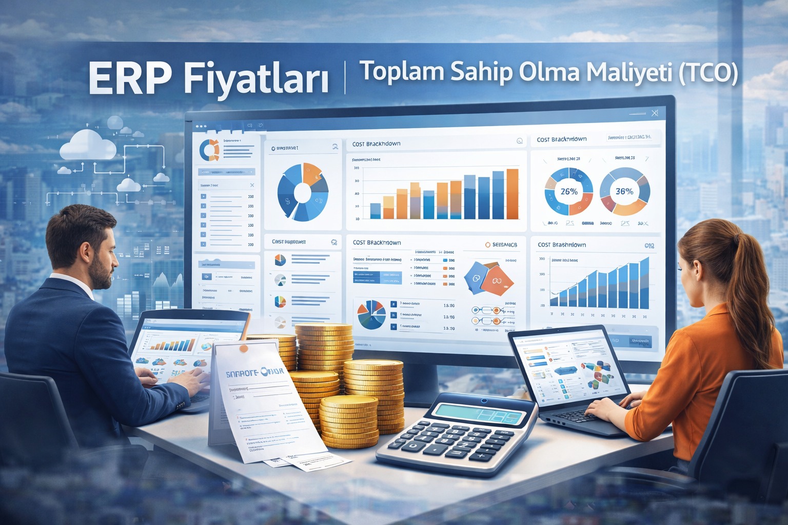 ERP programı fiyatları sorusu, yazılım satın alma sürecinin en karmaşık konularından biridir. Çünkü bir ERP’nin maliyeti yalnızca lisans ücretinden ibaret değildir. Kurulum, eğitim, özelleştirme, bakım ve veri göçü gibi kalemler toplandığında gerçek maliyet, başlangıçta beklenenin 3-5 katına ulaşabilir. Bu sayfada ERP fiyatlandırma modellerini, toplam sahip olma maliyetini (TCO) ve doğru bütçe planlamasının nasıl yapılacağını 2000+ işletmeye ERP kurulumu gerçekleştirmiş bir ekibin perspektifinden ele alıyoruz.