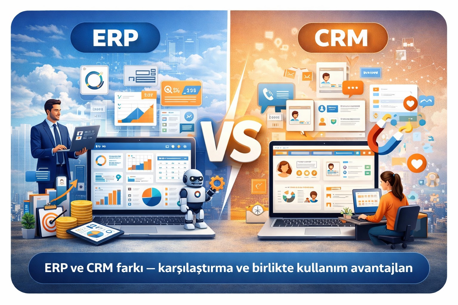 | Kapsam | Tüm departmanlar (finans, üretim, stok, İK, satın alma) | Satış, pazarlama, müşteri hizmetleri |