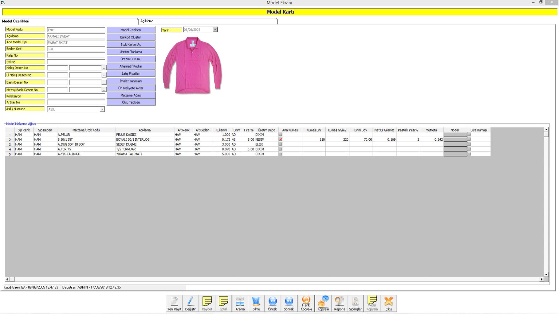 - Resimli masaüstü kısayol menüleri ile kolayca model kartına , siparişe, malzeme planlamasına ve üretim durumu ekranlarına ulaşabilirsiniz.