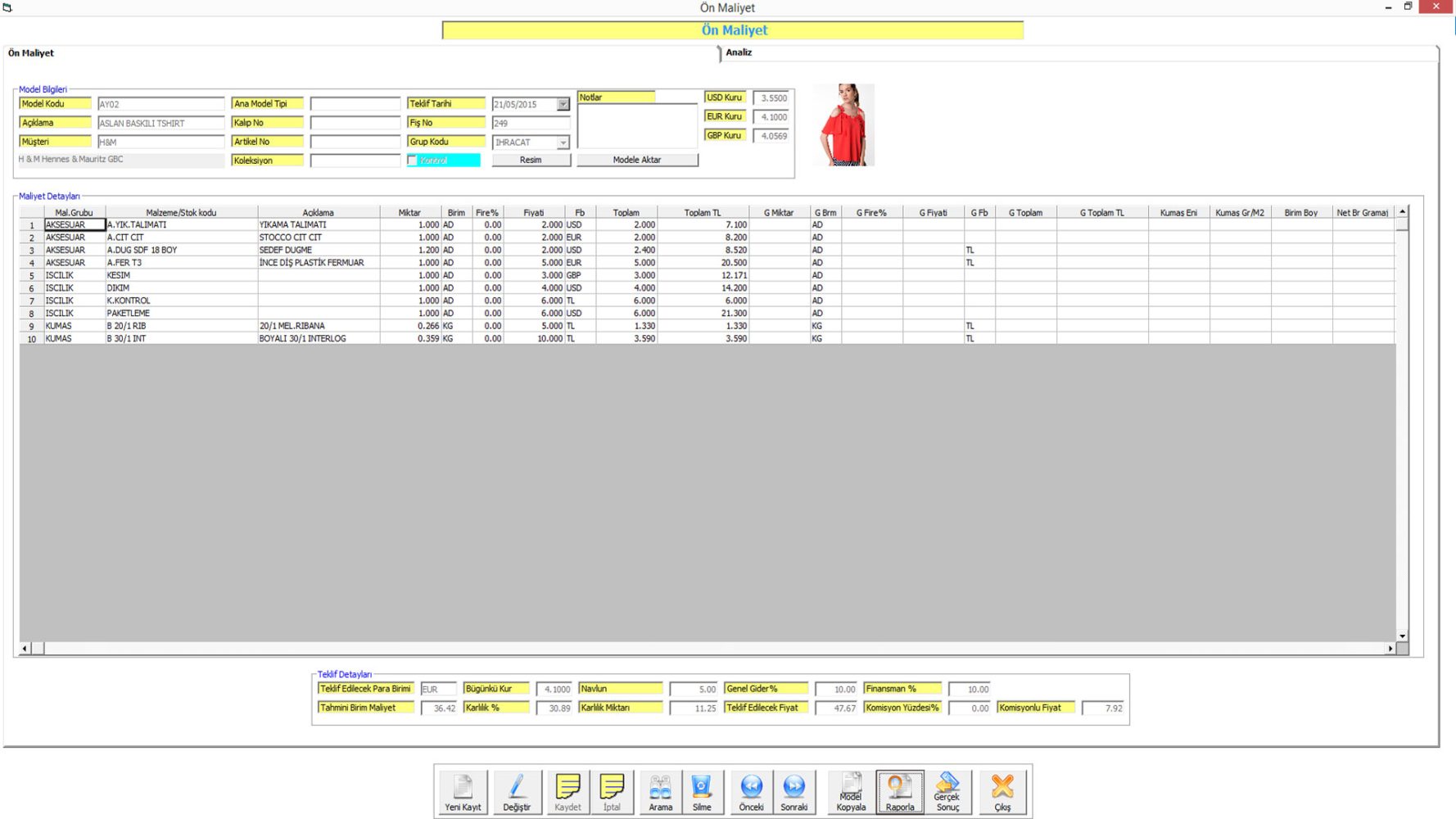 Konfeksiyon programında maliyet analizi yapılabilir mi?