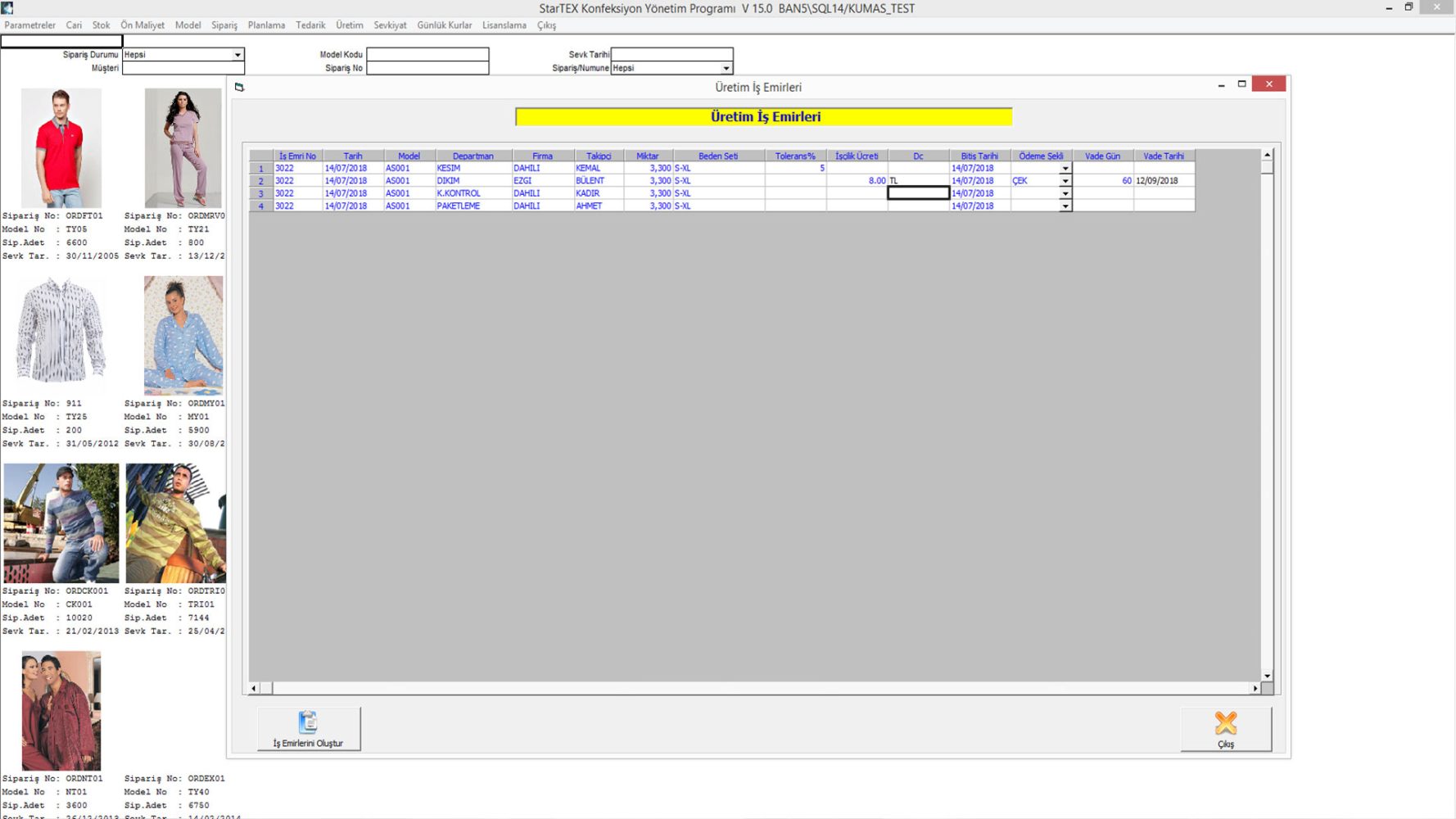 Program, siparişlerin renk, beden ve asorti dağılımlarını detaylı bir şekilde takip etmenizi sağlar. Üretim süreçlerinin her aşamasını izleyerek, siparişlerin zamanında ve doğru bir şekilde tamamlanmasını garanti eder.