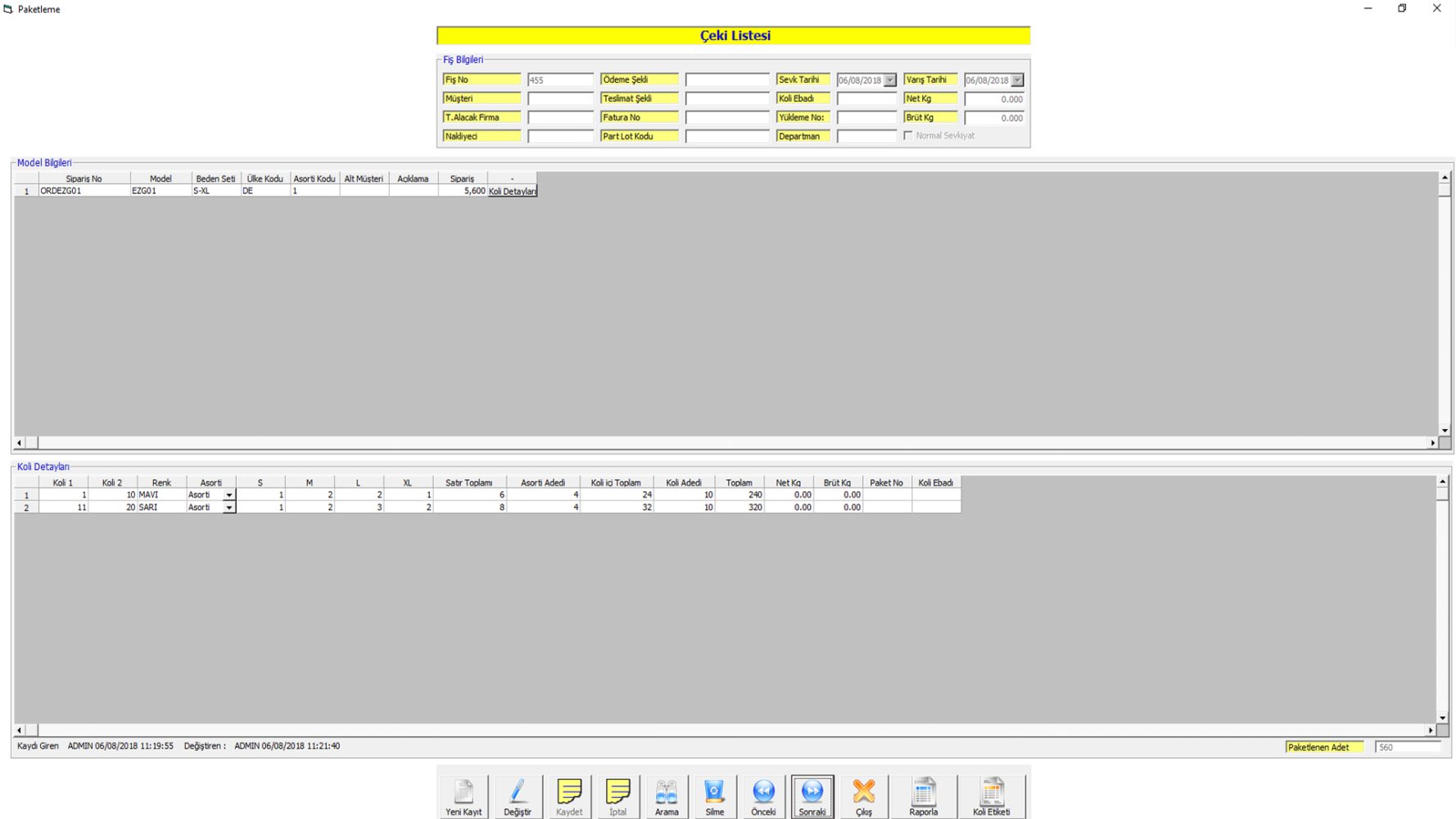 Tek bir çeki listesinde farklı beden setlerini kullanabilirsiniz. Tek bir çeki listesinde farklı siparişlerin farklı modellerini girebilirsiniz. Asortili veya tekleme siparişleriniz için çeki listesi hazırlayabilirsiniz. Koli üstü etiketi hazırlayabilirsiniz...